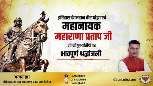 अमर झा -वीरता, स्वाभिमान, शौर्य और पराक्रम की प्रतिमूर्ति, मातृभूमि की रक्षा के लिए अडिग वीर शिरोमणि महाराणा प्रताप जी की पुण्यतिथि पर कोटिश: नमन