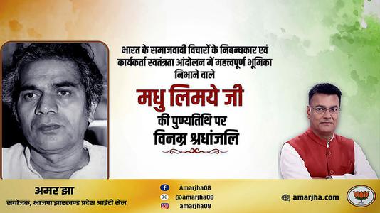 अमर झा -भारत के समाजवादी विचारों के निबन्धकार एवं कार्यकर्ता मधु लिमये जी की पुण्यतिथि पर विनम्र श्रधांजलि